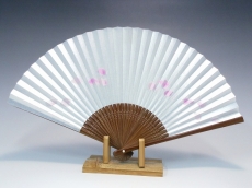 本銀地に桜が描かれた婦人用(レディース)の夏扇子です。