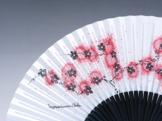 京扇子において定番のモチーフである「梅」が中LA氏の鋭い感性にて抽象的にデザインされた作品です。骨は黒染の35本骨です。