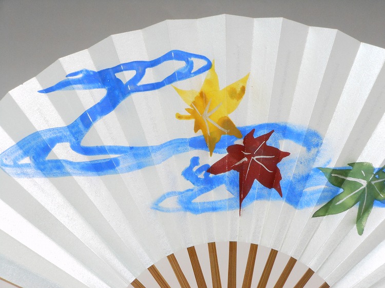平骨夏扇子(女性用)本銀地 流水紅葉 手描き