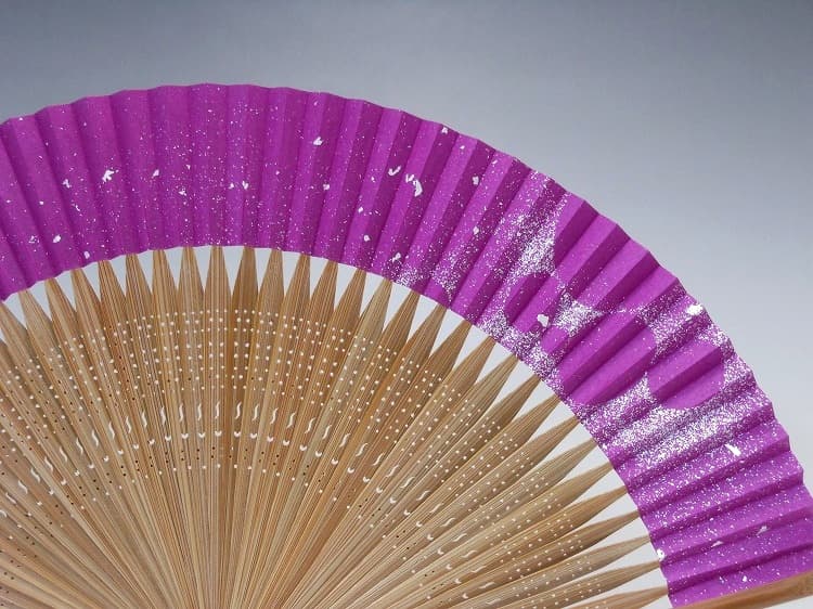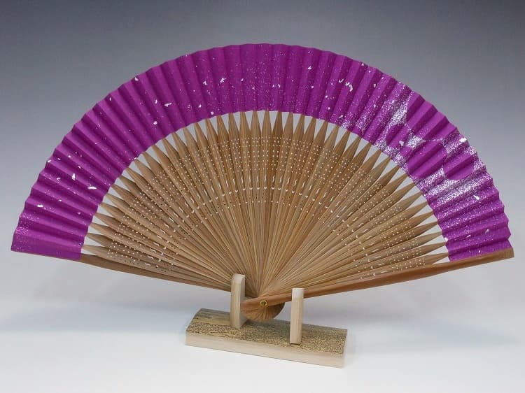 夏扇子(婦人用)箔動シリーズ「粉箔」京紫 短地のサイズなど