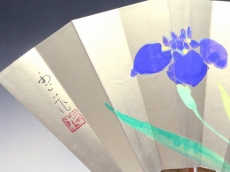 表面は薄金色地に菖蒲、裏面は流水が描かれてております。表面がメインで使える飾り扇子(カワホリ)です。