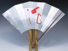 カワホリは、扇の形状の1つで、骨は5本、長さが尺2寸5分(約 38.3cm)と大きく、飾り扇に適した形状となっています。骨は煤竹(焼煤)です。