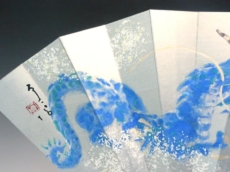 飾り扇子(カワホリ)銀色地 青龍のサイズなど