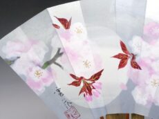 日本画家・河野眞治氏による肉筆の作品となっています。本金や本銀、厳選された天然の岩絵の具等で描かれており素晴らしい発色の贅沢な飾り扇子です。