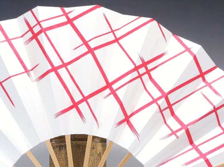 舞扇子(白竹)白地・色格子・赤
