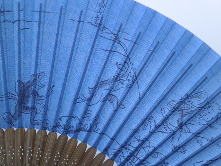 京都高山寺の国宝・鳥獣戯画の一部をデザインにしたユニークな絵柄の扇子です。